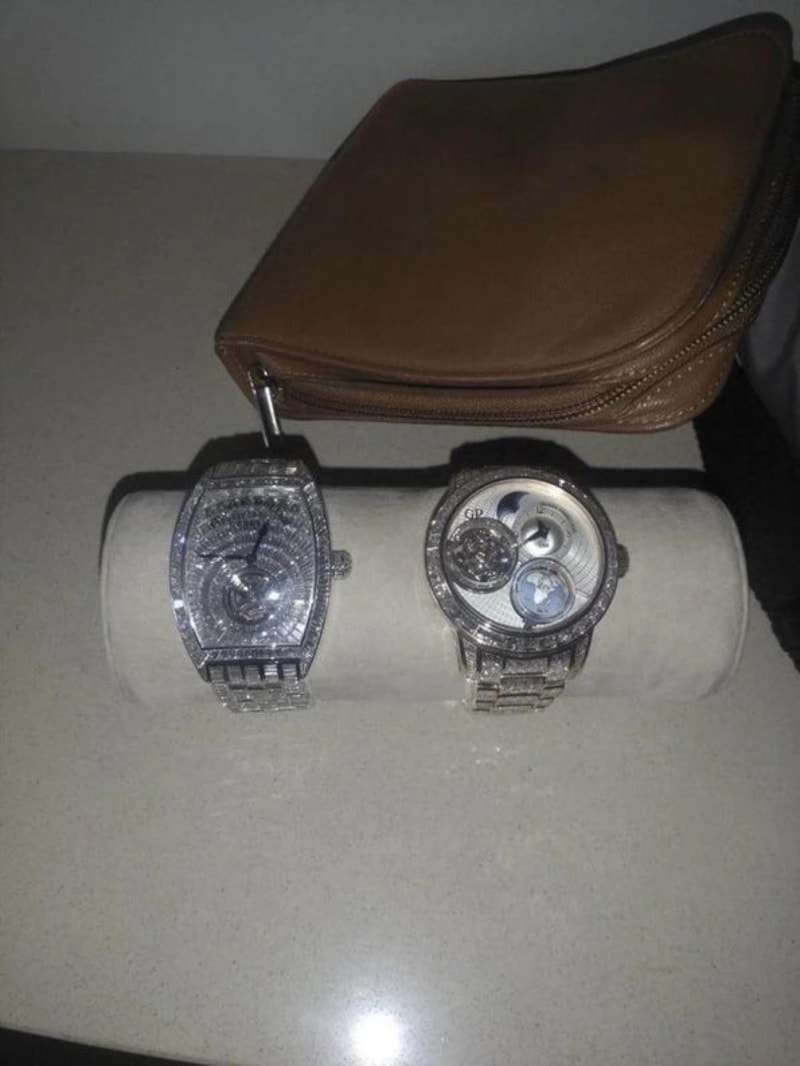 A Bola'nın haberine göre, bu saatler arasında elmas işlemeli 1,5 milyon euro değerindeki Franck Muller Cintree Tourbillon ve horoloji dünyasında eşsiz kabul edilen 2 milyon euroluk Girard Perregaux Planetarium Triple-Axis Tourbillon bulunuyordu.