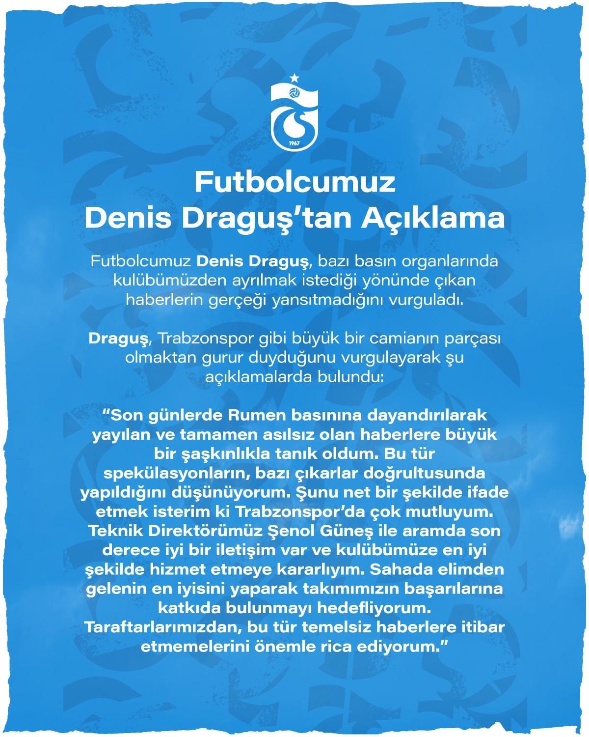 Trabzonspor forması giyen Denis Draguş, bazı basın organlarında kulüpten ayrılmak istediği yönünde çıkan haberlerin gerçeği yansıtmadığını vurguladı.