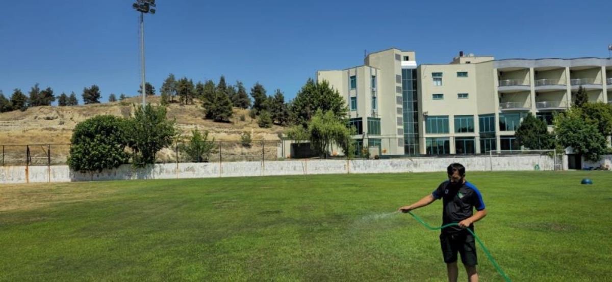 Haluk Ulusoy Tesislerinde sulama yapılamadığı için sahadaki çimler belli bir oranda kuruyunca, antrenman sahası içler acısı bir hal aldı.