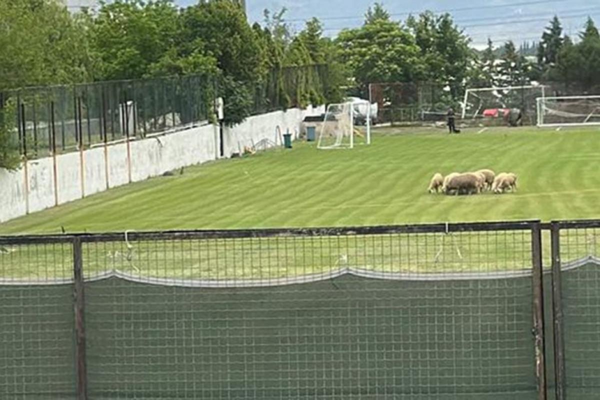 Sosyal medyada gündem olan fotoğrafta Denizlispor'un antrenmanlarını yaptığı Haluk Ulusoy Tesisleri'ndeki sahada koyunların otlatıldığı görüldü.
