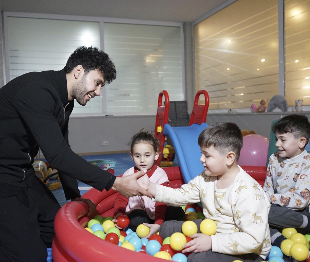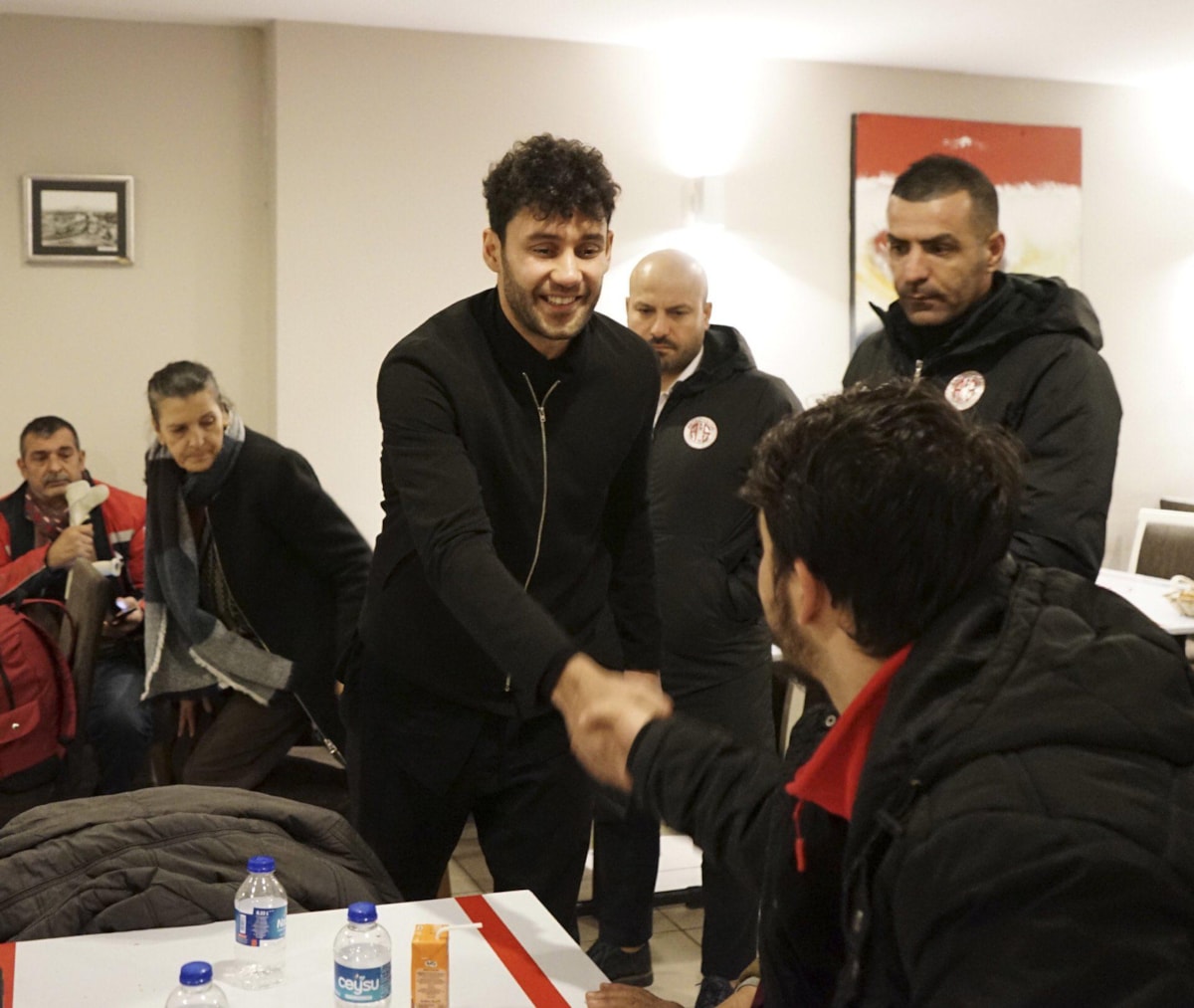 Antalyaspor kaptanı Veysel Sarı da tesislere gelerek depremzedelerle yakından ilgilendi. Aralarında ailelerin ve sporcuların da bulunduğu depremzedelerle tek tek ilgilenen ve hatırlarını soran Sarı, oyun alanında çocuklarla bir süre oyun da oynadı.
