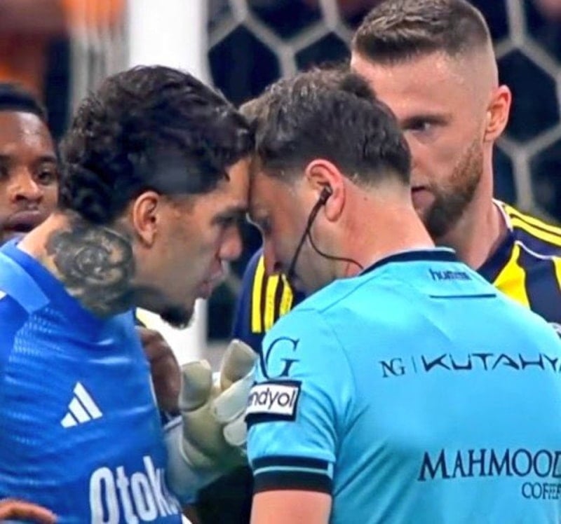 Dev mücadelede Galatasaray, 60. dakikada penaltı kazandı. O anlarda sarı-lacivertlilerin kalecisi Ederson'un kırmızı kart görmesiyle Fenerbahçe 10 kişi kaldı.