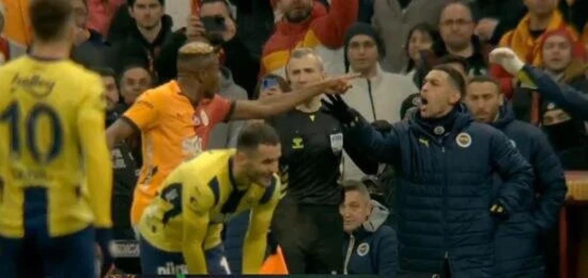 Hakem Vincic, VAR'ı bir süre dinledikten sonra oyunun devam etmesini istedi. Bu sırada Osimhen ile Fenerbahçe yedek kulübesineki Mert Hakan sözlü dalaşa girdi. Osimhen, Mert Hakan'a sus işareti yaptı.