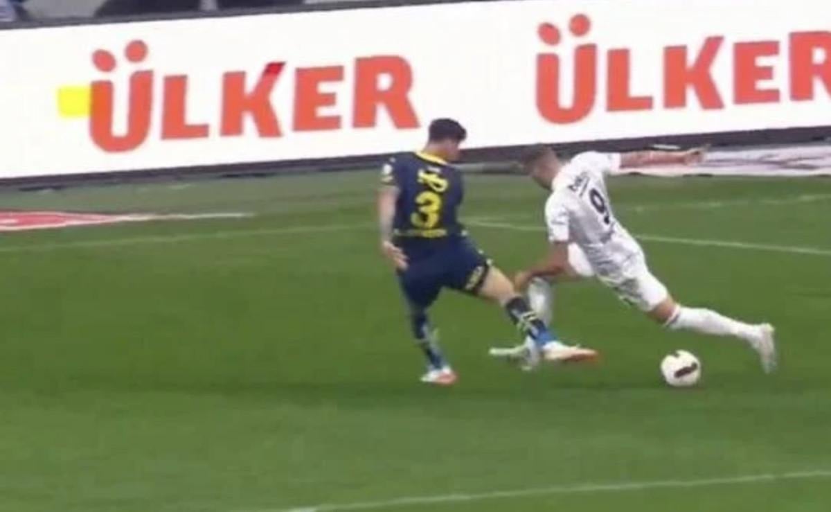 Kale alanına doğru inerken topu soluna çekmek isteyen Cenk, Samet Akaydin'in müdahalesiyle yerde kaldı. Hakem Atilla Karaoğlan penaltı noktasını gösterdi.