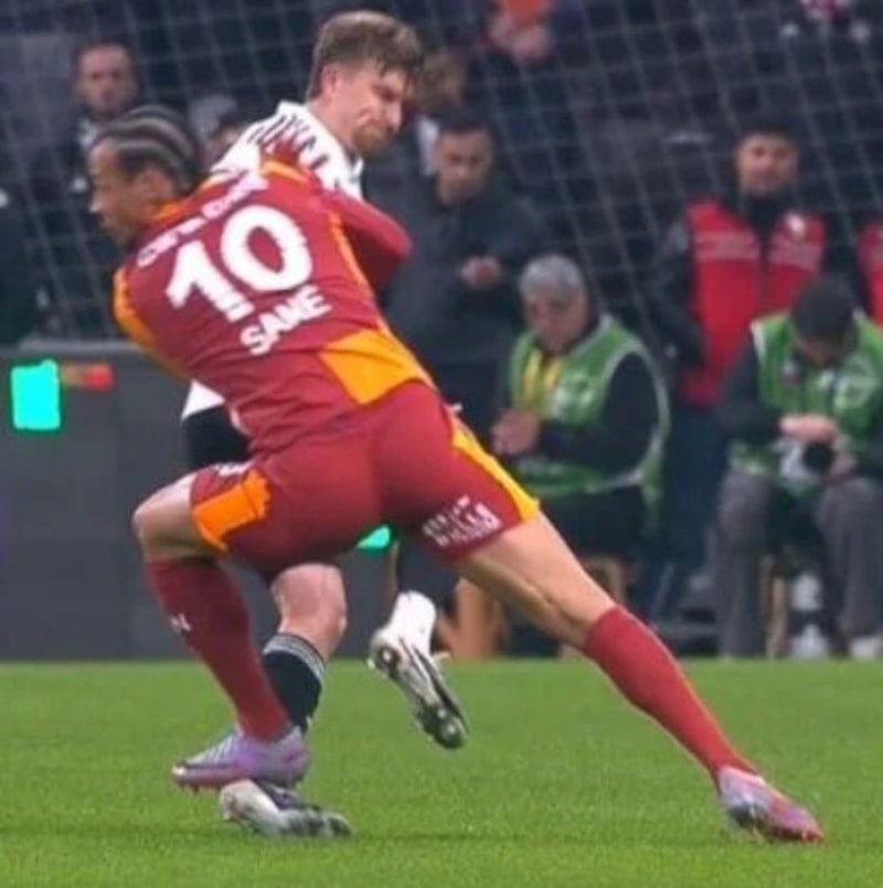 Galatasaray'ın Alman futbolcusu Leroy Sane, Beşiktaş derbisinde kırmızı kart gördü.