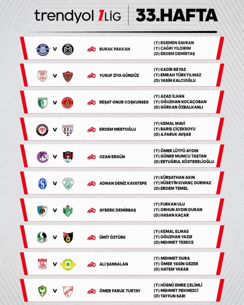Buna göre Trabzonspor-Galatasaray karşılaşmasında Cihan Aydın yönetecek.