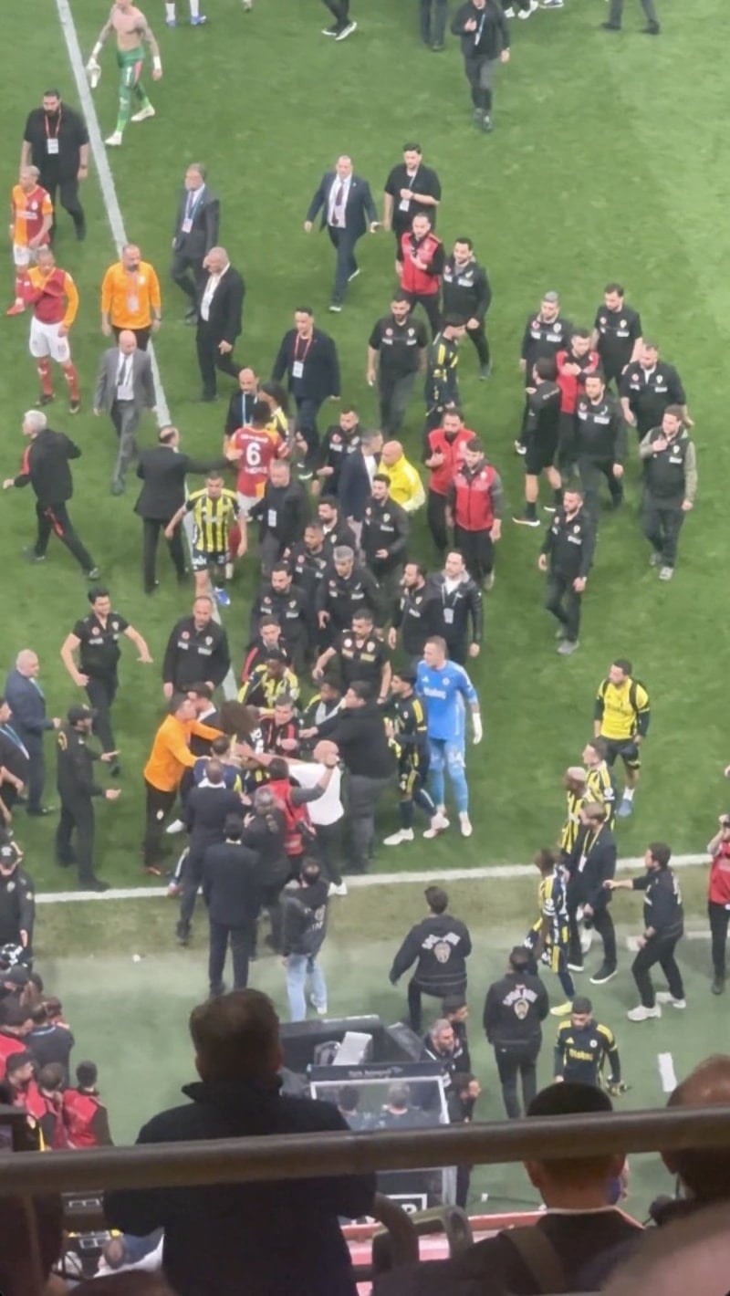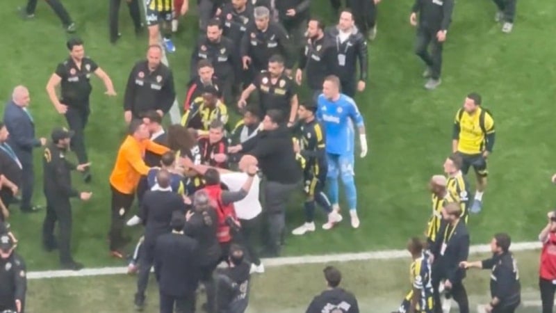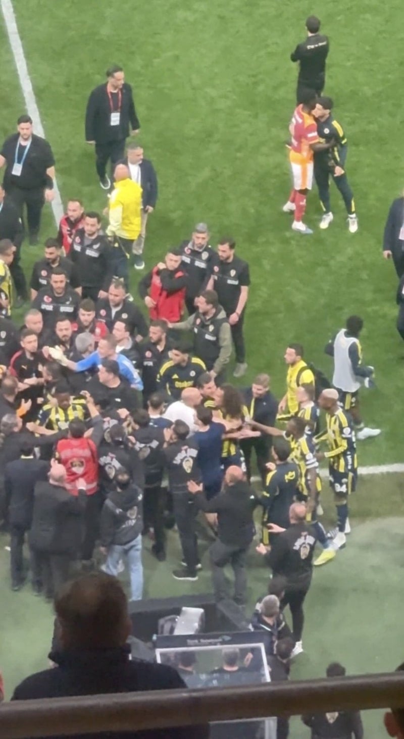 Galatasaray'ın 3-0'lık üstünlüğüyle sona eren derbi sonrası saha bir anda karıştı. Karşılaşmanın bitiş düdüğüyle birlikte kendisine laf atılan Fenerbahçeli futbolcu Matteo Guendouzi, sarı-kırmızılı görevlilerin üzerine yürüdü. İşte o anlar...