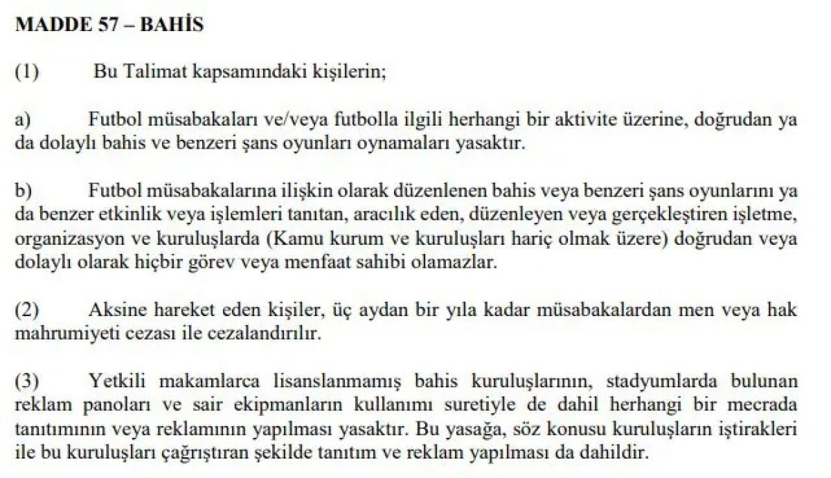 Futbol Disiplin Talimatı'nın 57. maddesi: