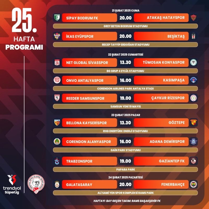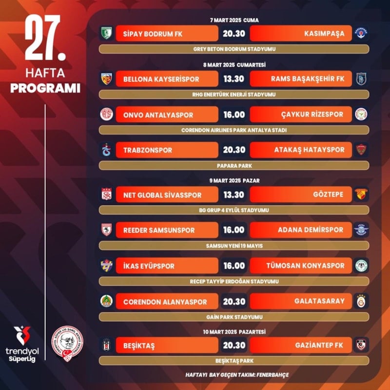 TFF’den yapılan açıklamada, maç takvimi belirlenirken takımların Avrupa Ligi’ndeki karşılaşmaları ve Türkiye Kupası maçları dikkate alınarak planlamanın yapıldığını belirtildi.
