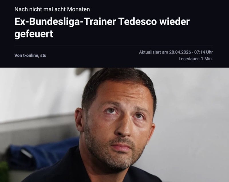 Kicker haberinde, Tedesco için "Derbi mağlubiyetinin ardından Fenerbahçe, Tedesco ile yollarını ayırdı. 2025'in ağustosunun sonunda Fenerbahçe, teknik direktör Jose Mourinho ile yollarını ayırdı. Yerine Tedesco getirildi ve takımın ligde tekrar birinci sıraya çıkması hedeflendi. Fenerbahçe o sezon sadece iki maç kaybetmiş olsa da, on beraberlik lig lideri Galatasaray ile rekabet etmek için çok fazlaydı. Şimdi, İstanbul'da neredeyse yedi ay geçirdikten sonra, bir kez daha kulüpsüz durumda." ifadelerine yer verildi.