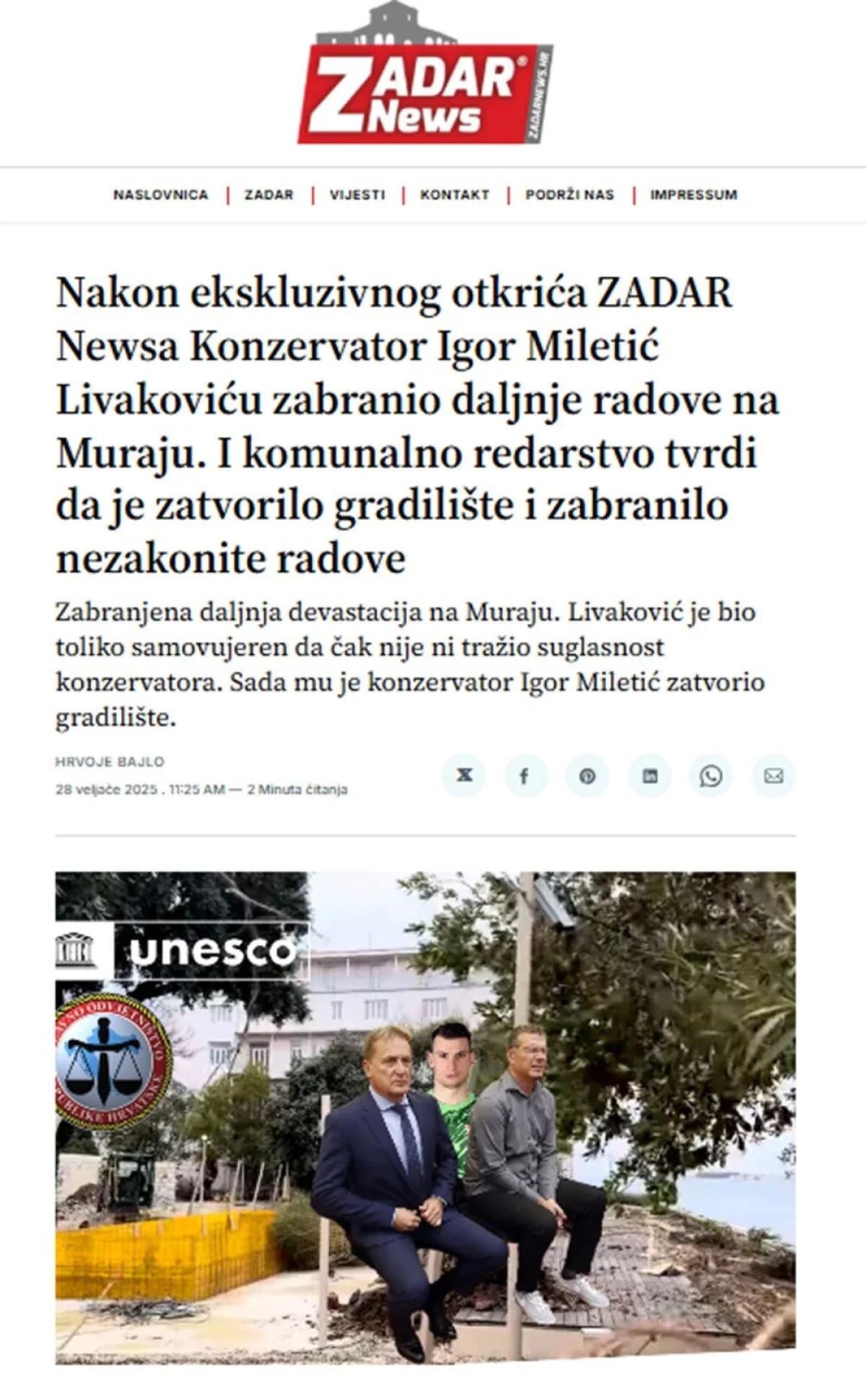 Hırvat basınında yer alan haberlere göre; Livakovic, UNESCO'nun kültür mirası olarak gördüğü surları kazmakla suçlandı.