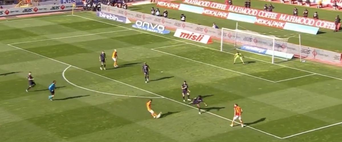 Dakikalar 27'yi gösterdiğinde Fernando Muslera'nın uzun gönderdiği pası sağ iç kulvarda kontrol eden Barış Alper Yılmaz, arkadan gelen Dries Mertens'i gördü.