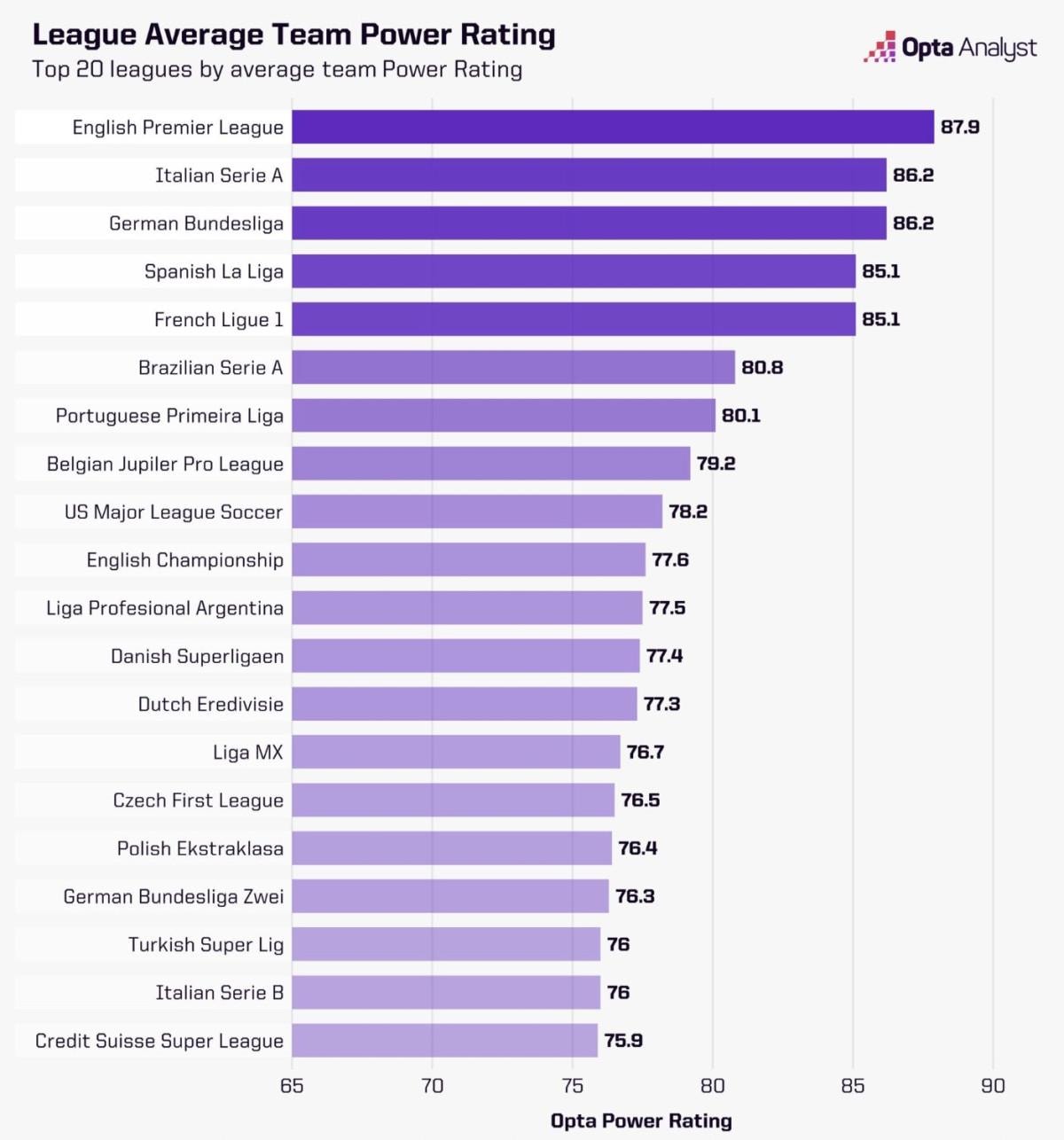 Spor istatistikleri toplayan ve verileri analiz eden Opta, dünyanın en güçlü liglerini belirledi.