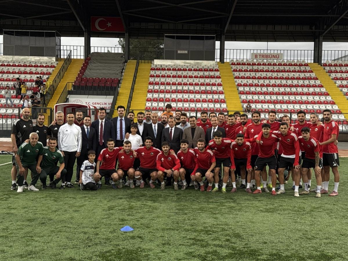 - Özbek, eski başkan Adnan Polat ve yerel yöneticilerle beraber futbolculara başarılar diledi.