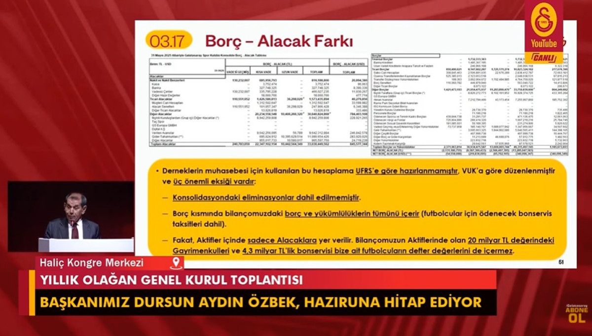 Dursun Özbek daha sonra kulübün finansal durumu ve devam eden projelerle ilgili bilgiler verdi.