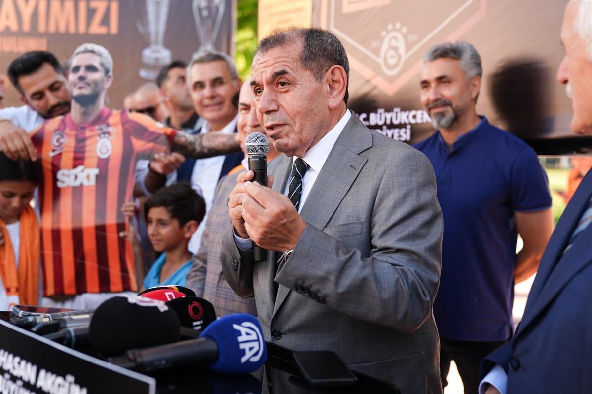 Rakiplerimiz, Galatasaray'ın yükselişini durdurmanın mümkün olmadığını görünce, faaliyetlerine ağırlık verdi. Galatasaray'ın 25. şampiyonluğunu ve 5. yıldızını inşallah burada tekrar beraber kutlayacağız. Anamızın ak sütü gibi helal bir kupa kazandık. Kimse bu kupaya bir laf edemez. Galatasaraylılara armağan olsun. İnşallah önümüzdeki sene 5. yıldızı takacağız. Burada formalı arkadaşlarım var. 4 yıldızlı formaları dolaba kaldırın, 5 yıldızlı formalar geliyor, ondan alın.