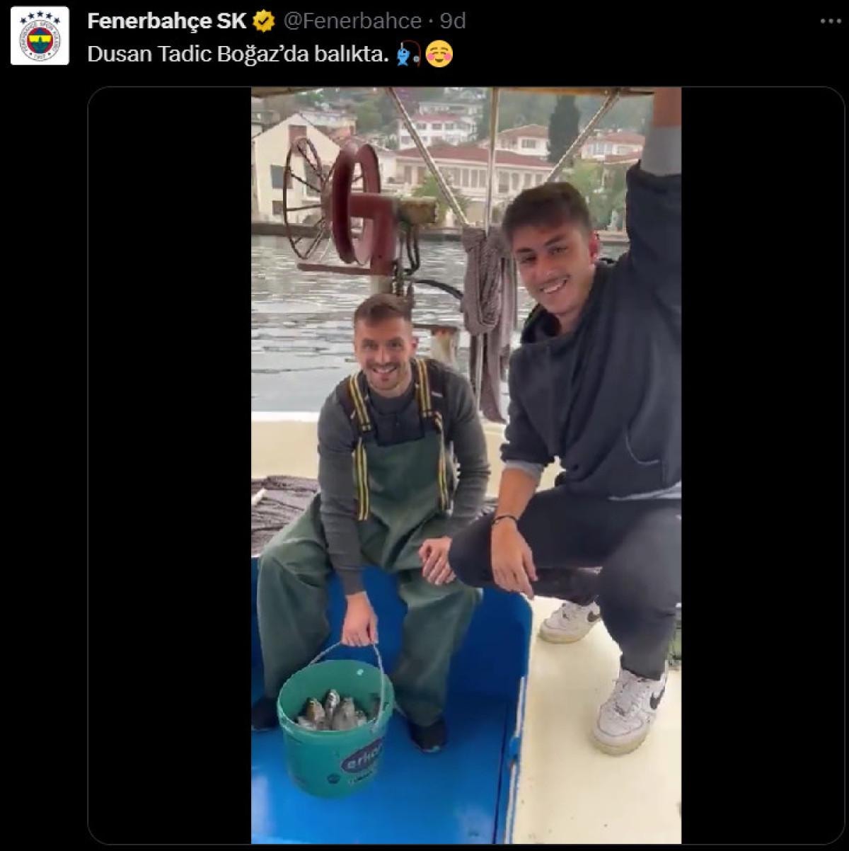 Fenerbahçe'nin sosyal medya hesabından yapılan paylaşımda, "Dusan Tadic Boğaz’da balıkta." denildi.