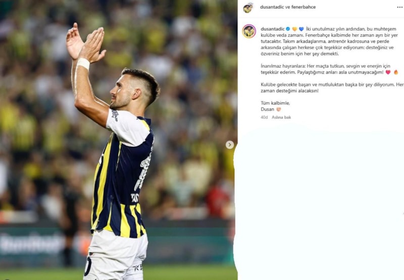 Fenerbahçe ile sözleşmesinin bitmesinin ardından takımdan ayrılan Dusan Tadic, sosyal medya hesabından sarı-lacivertliler için bir veda açıklaması yaptı.