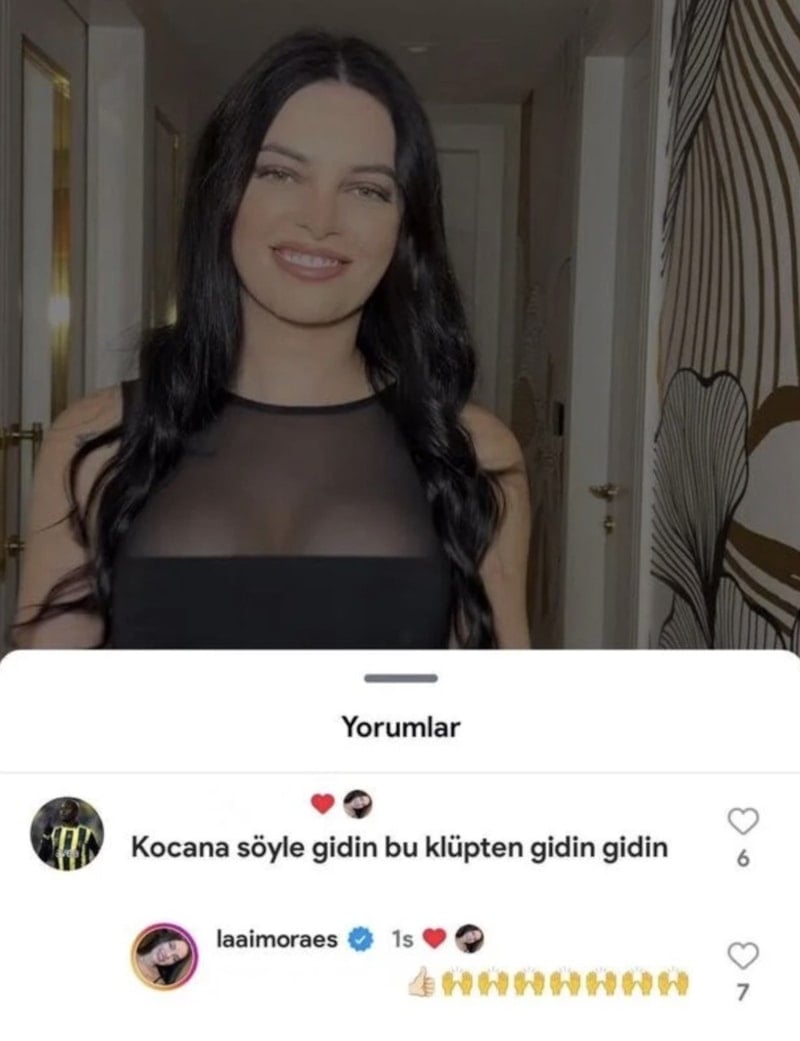 Bir kişi, Fenerbahçeli kaleci Ederson'un eşi Lais Moraes'in geçtiğimiz günlerde yaptığı paylaşımın altına "Kocana söyle gidin kulüpten, gidin" yazdı.