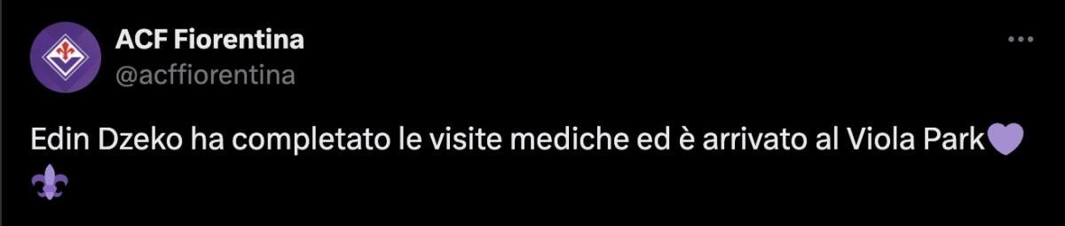 Fiorentina ile el sıkışan Edin Dzeko, İtalyan kulübü için bugün sağlık kontrollerinden geçti. Dzeko, 1+1 yıllık sözleşmeye imza atacak.