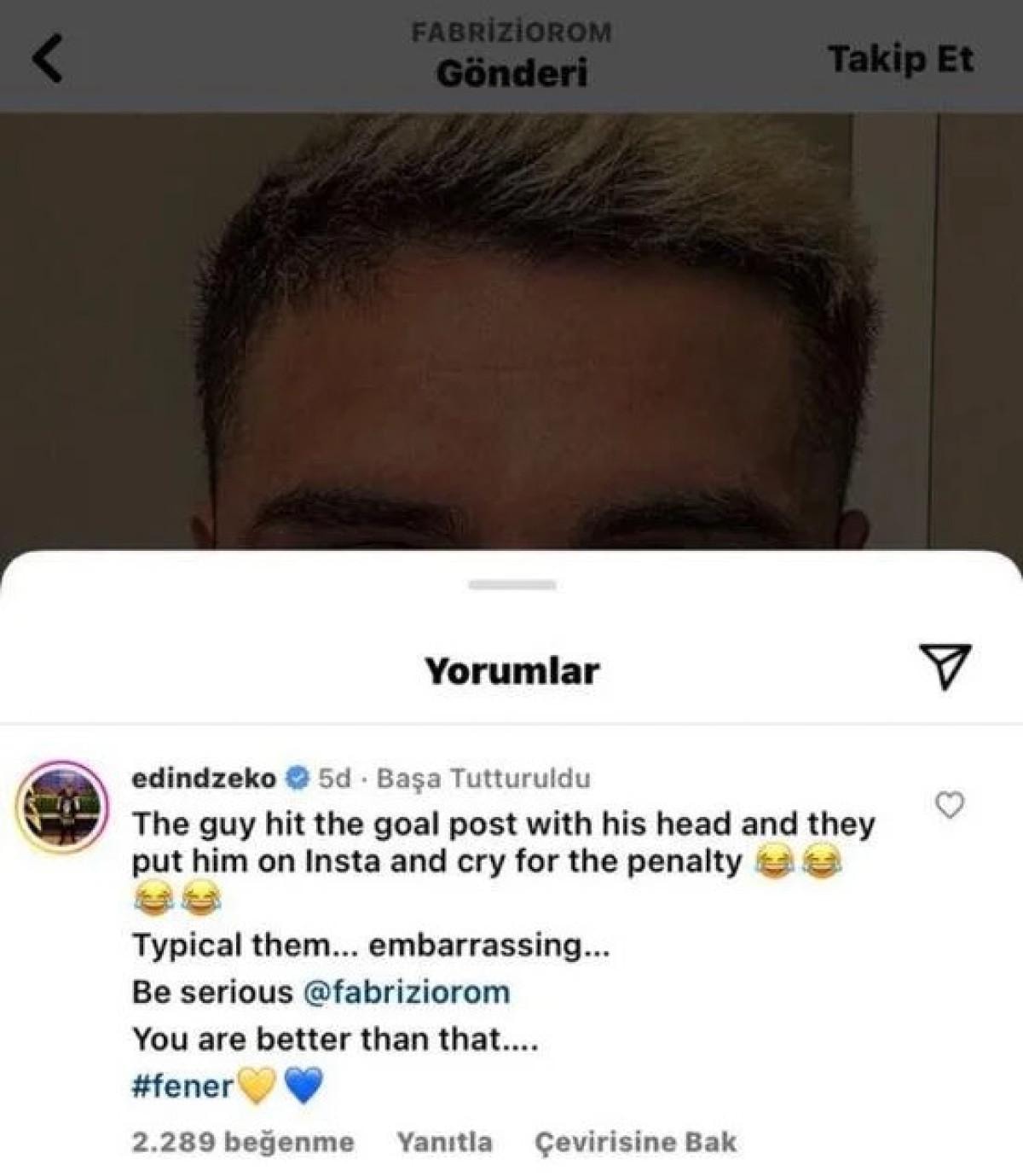 "Adam kafasını direğe vurdu ve onu Instagram'a koyup penaltı için ağladılar. Onların tipik davranışı. Utanç verici. Her zamanki halleri. Fabrizio, sen de bundan daha iyisini yapabilirsin."