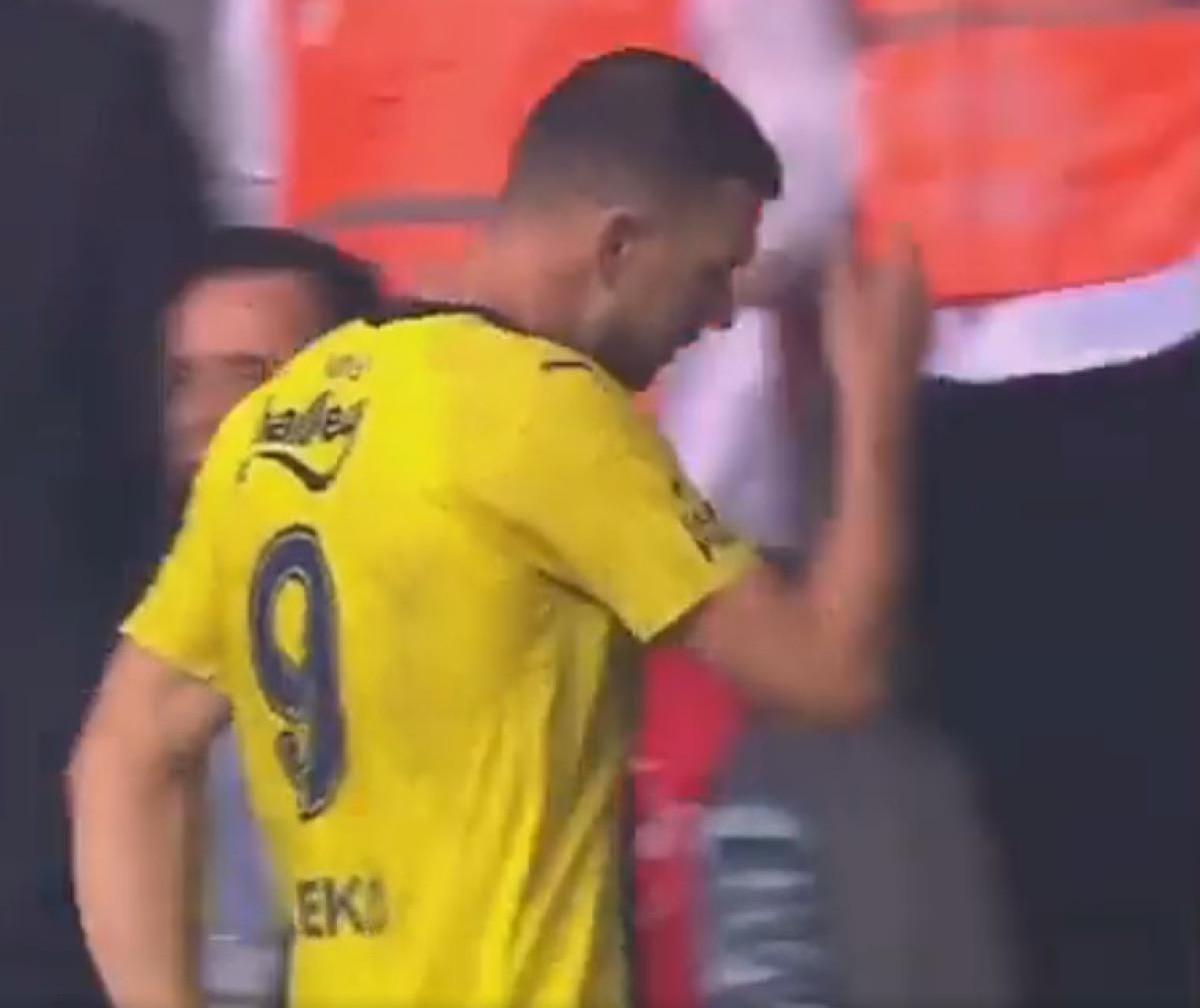 84. dakikada oyundan alınan Boşnak futbolcunun el hareketleri yapması ise sarı-lacivertli taraftarların dikkatini çekmişti.