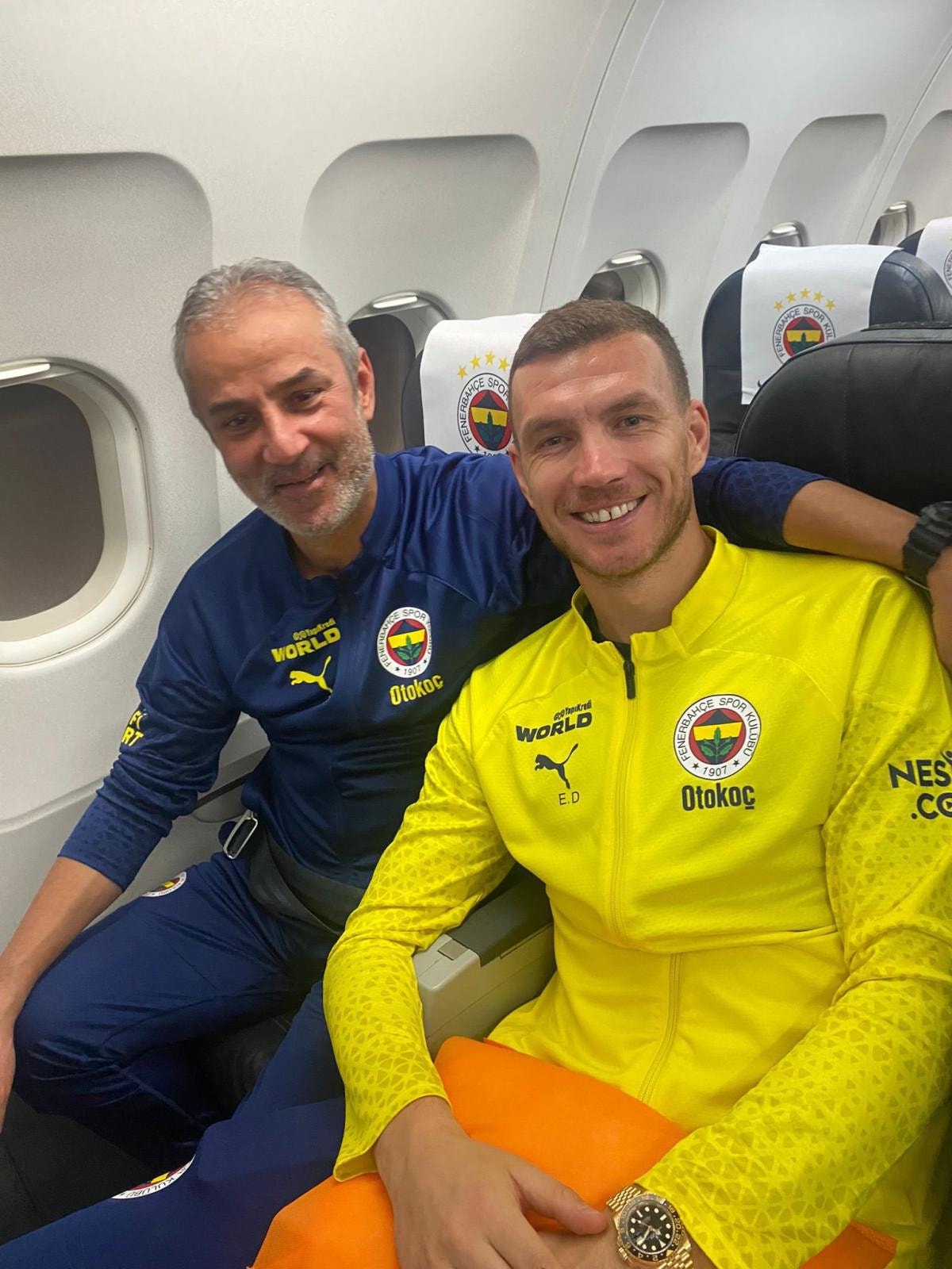 Dönüş uçağında İsmail Kartal ile birlikte oturan Dzeko, deneyimli hocayla fotoğraf çektirerek aralarında problem olmadığı mesajını verdi.