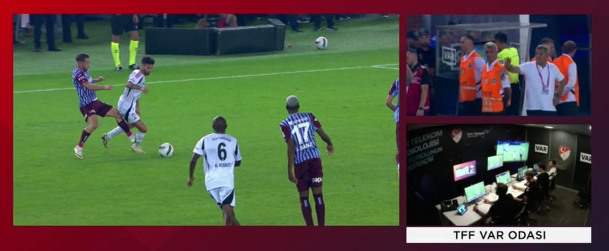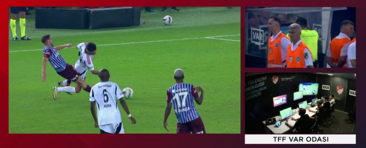 Bordo-mavili takımda Edin Visca, Rafa Silva'ya faul yaptı. Hakem Ali Şansalan, VAR'dan gelen uyarının ardından pozisyonu ekranda izledi.