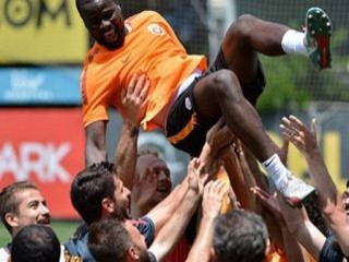 Sözleşmesi sona eren Fildişi Sahilli oyuncu, takım arkadaşlarıyla vedalaştı. Takım arkadaşları, Eboue'yi birlikte havaya kaldırdı.