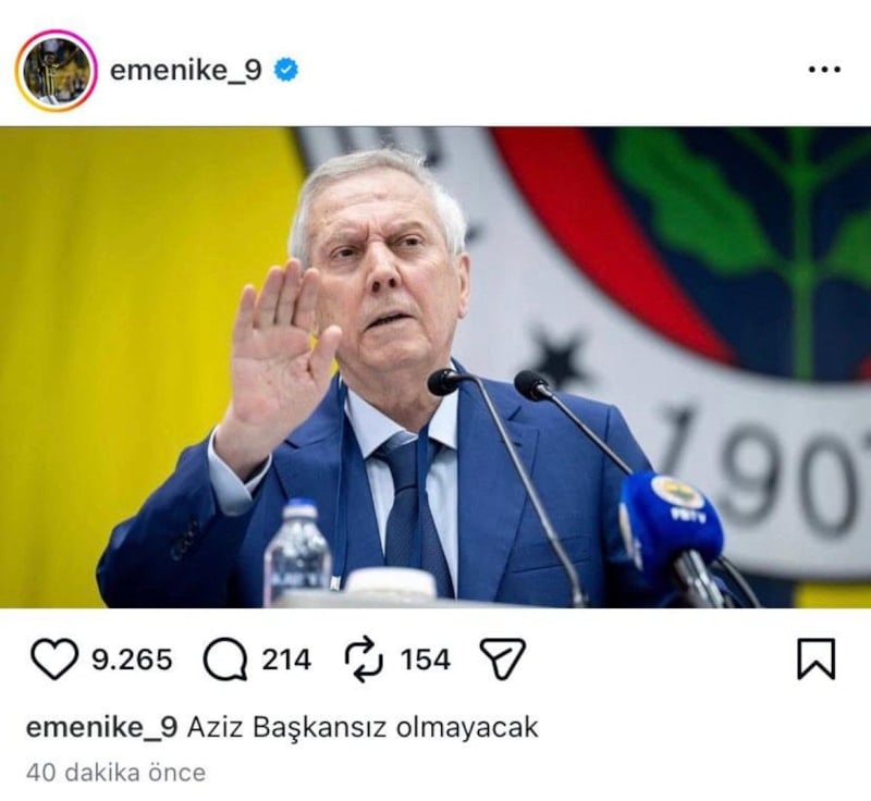Sarı-lacivertli ekibin eski başkanlarından Aziz Yıldırım için paylaşımda bulunan Emenike, kısa ama çarpıcı bir mesaj verdi.