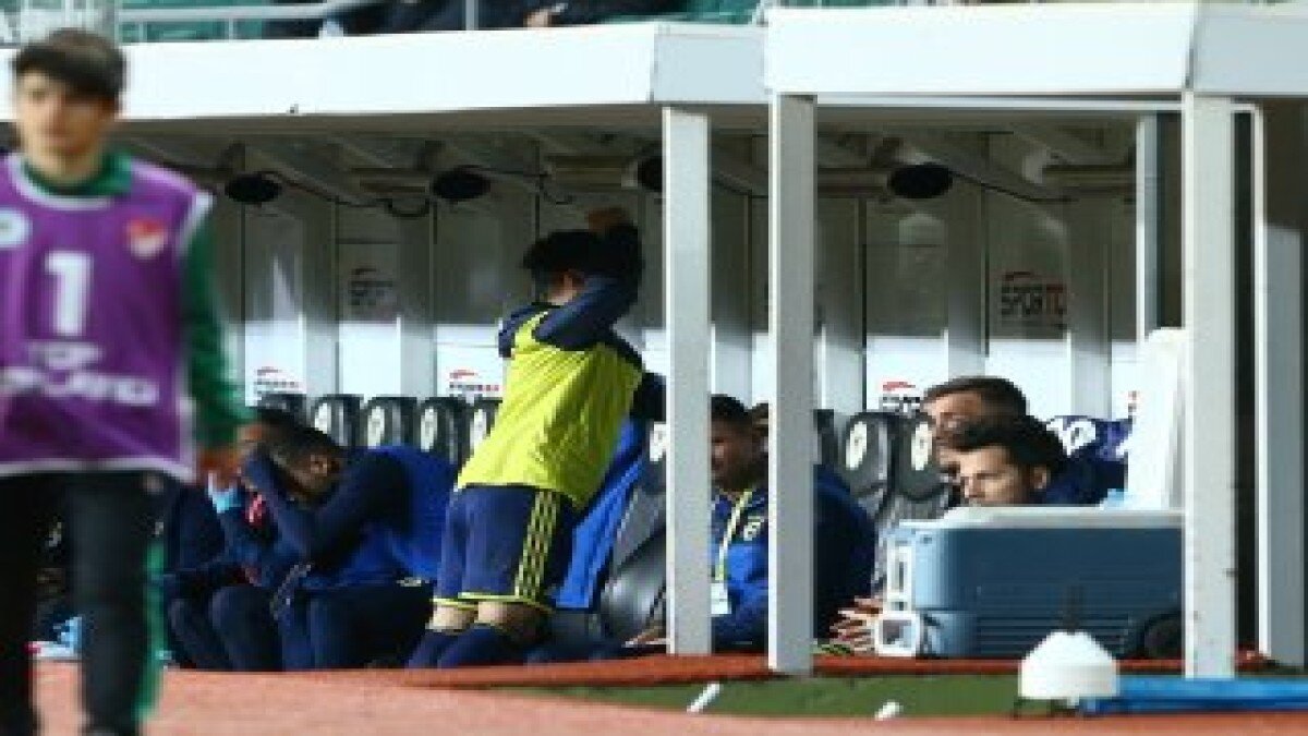 Üst üste 7'nci lig maçını kazanamayan sarı-lacivertliler 9 kişi kalan rakiplerine 1-0 mağlup olurken karşılaşmanın 64'üncü dakikasında oyundan çıkan Emre Belözoğlu, yedek kulübesinde sinirlerine hakim olamadı.
