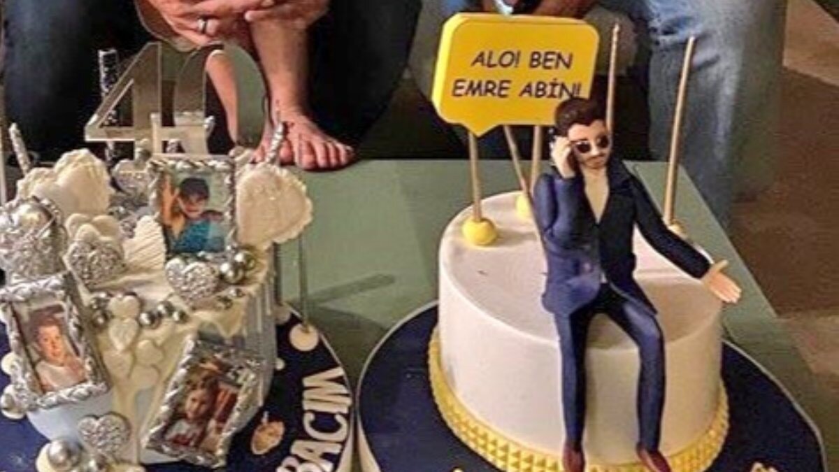 40. yaş gününde ailesiyle birlikte vakit geçiren Emre için yapılan pasta, dikkatlerden kaçmadı.