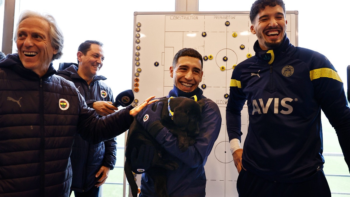 Jorge Jesus ve kaptan Altay Bayındır önderliğinde, Fenerbahçe takımı, Emre Mor'a jest yaptı. Yavru bir labrador cinsi köpek hediyen edilen Mor, hem duygulandı hem de sevindi.