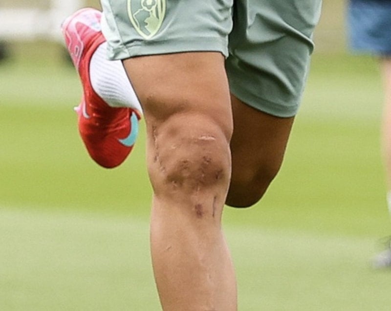 Birçok ameliyat geçiren Ünal'ın dizinde derin izler kaldığı görüldü.
