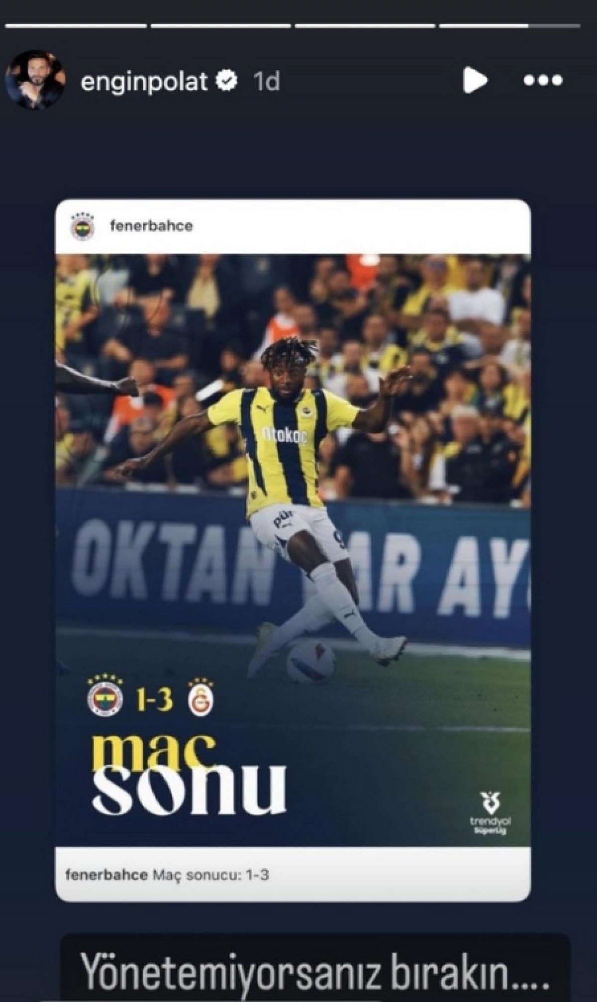 Galatasaray’ın Fenerbahçe’yi mağlup etmesiyle birlikte Polat, sosyal medya hesabından, "Yönetemiyorsanız bırakın..." ifadelerini kullandı.