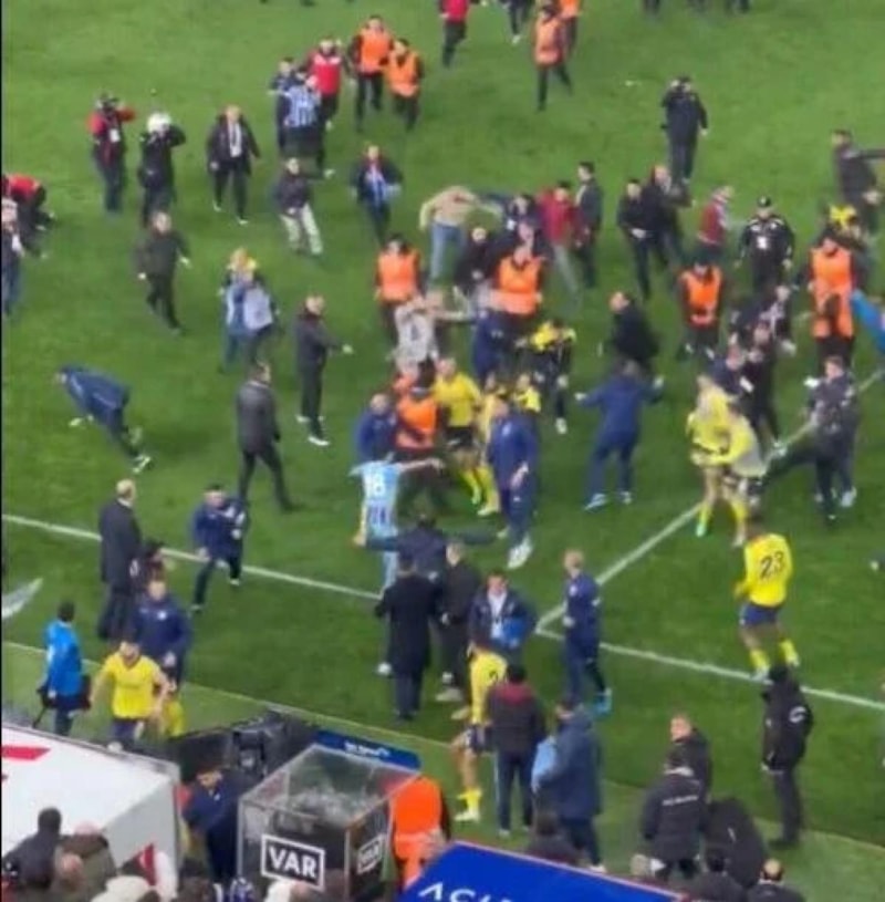 Trabzonsporlu futbolcu Eren Elmalı'nın, tribünden inen taraftarların Fenerbahçeli oyunculara doğru yönelmesi sonrası Fenerbahçeli meslektaşlarını soyunma odasına giderken korumaya çalışması ve taraftarlara engel olması dikkat çekti.