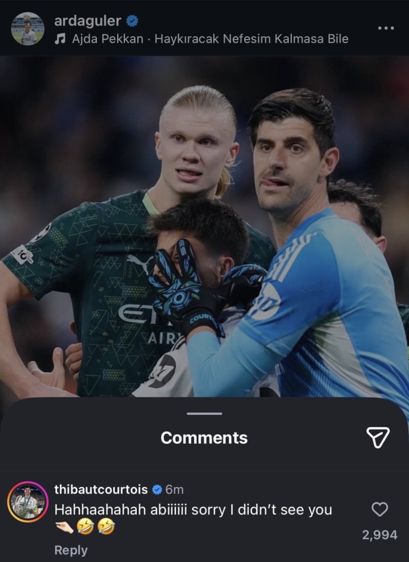 Courtois ise Arda'nın gönderisine "Üzgünüm abi seni görmemiştim" yorumunu yaptı.