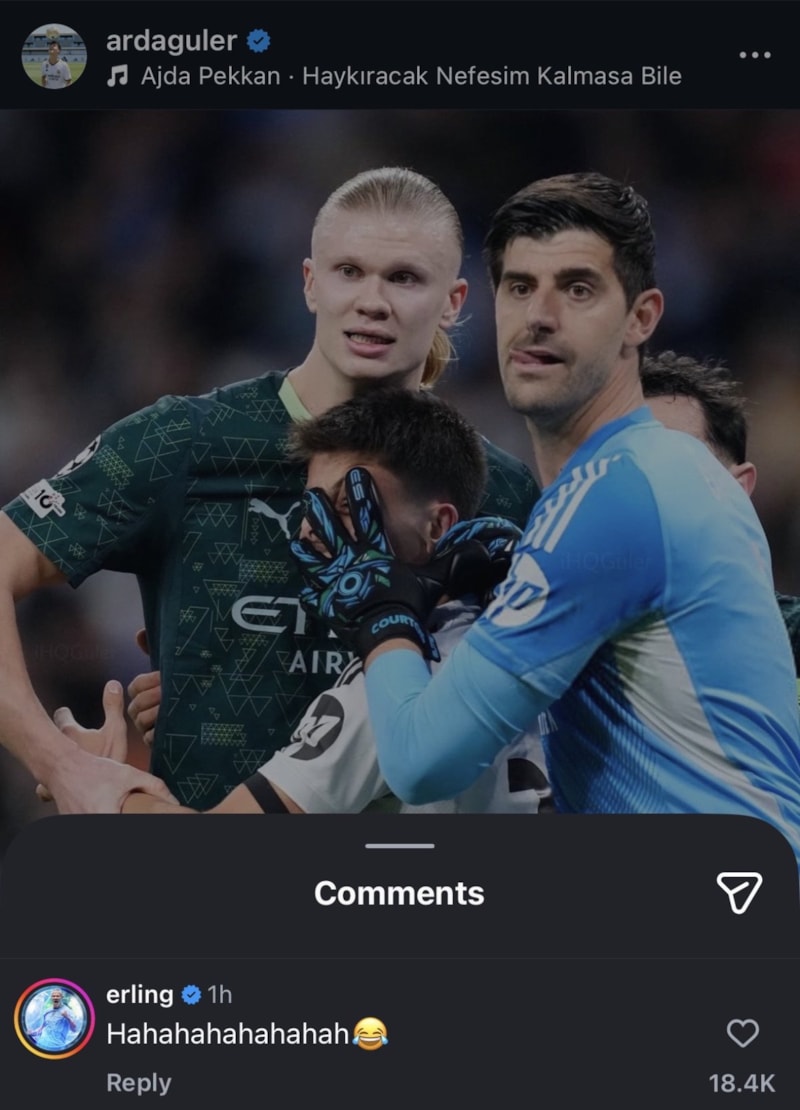 Yaptığı paylaşım kısa süre içerisinde sosyal medyada viral olurken Norveçli golcü Erling Haaland bu paylaşıma "Hahahahahah" yazarak sonuna gülme emojisi ile yanıt verdi.