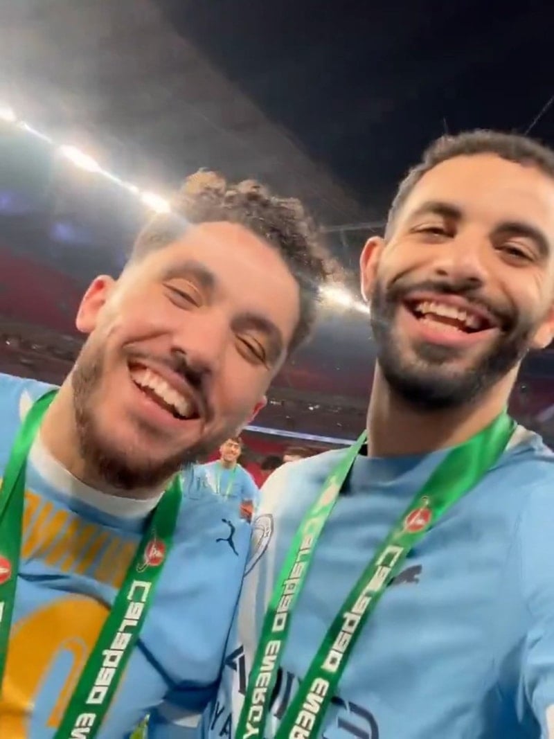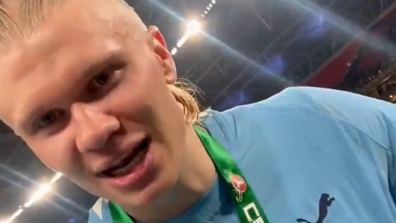 İngiliz ekibinin Norveçli golcüsü Erling Haaland, kupa zaferi sonrası takım arkadaşları Rayan Cherki ve Rayan Ait Nouri ile birlikte "Elhamdülillah" dedi.