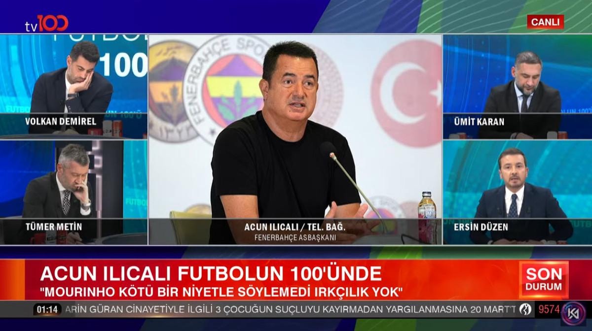 Fenerbahçe Asbaşkanı Acun Ilıcalı, Ersin Düzen’in moderatörlüğünde ekrana gelen Futbolun 100’ü programına telefonla bağlanarak açıklamalarda bulundu.