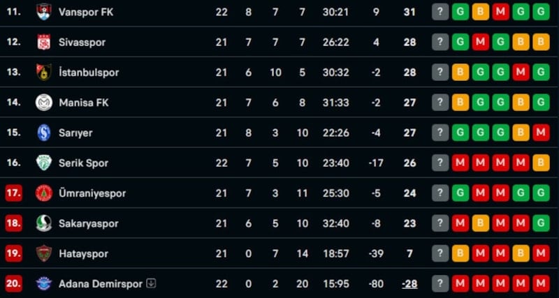 Bu galibiyetin ardından Erzurumspor FK puanını 42'ye yükseltti. Pendikspor 38 puanda kaldı.