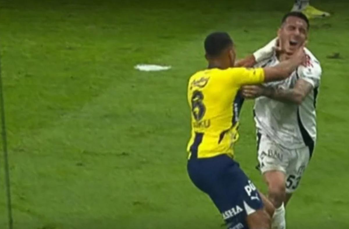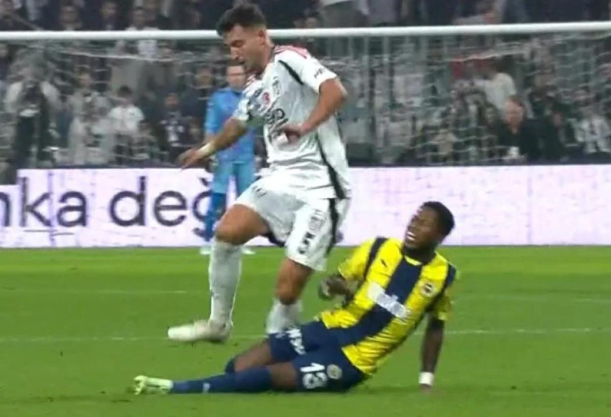 Deniz Çoban: Kontrolsüz hareketi anlatırken bunu örnek gösterirsiniz. Topla oynasa bile karşınızda rakip var, sıçramasa sonuçları daha ağrı olur. Ofsayt vardı, ihlal sayılmaz değil. Beşiktaşlı oyuncu kartı görecek, oyun yine endirekt serbest vuruş ve ofsaytla başlayacak. Tartışmasız sarı kart.