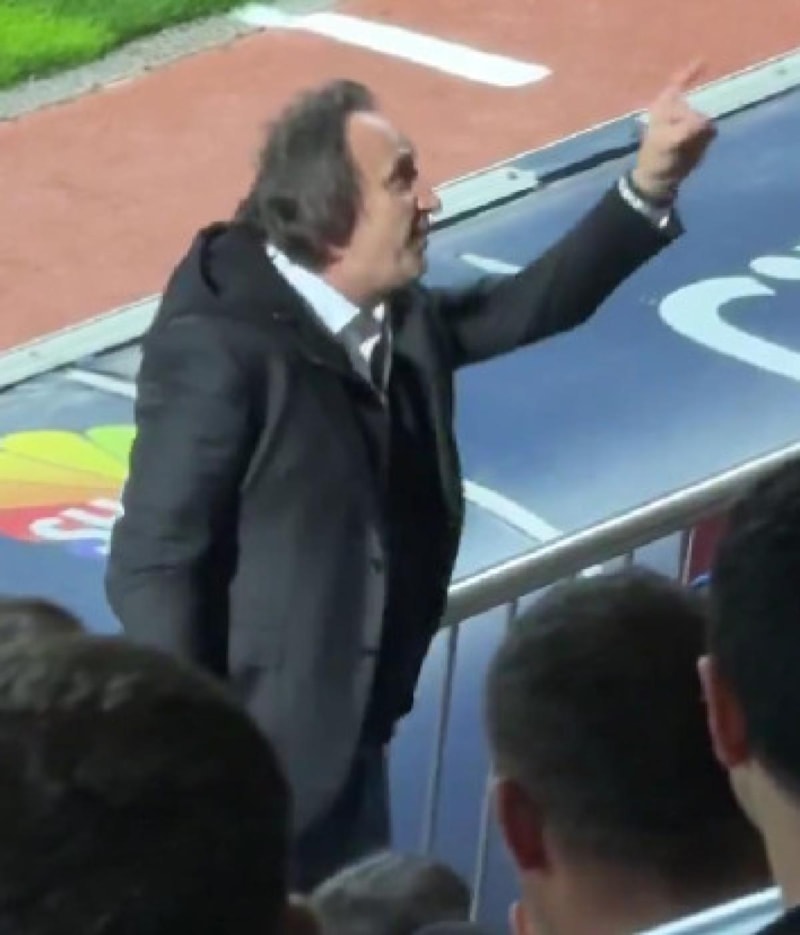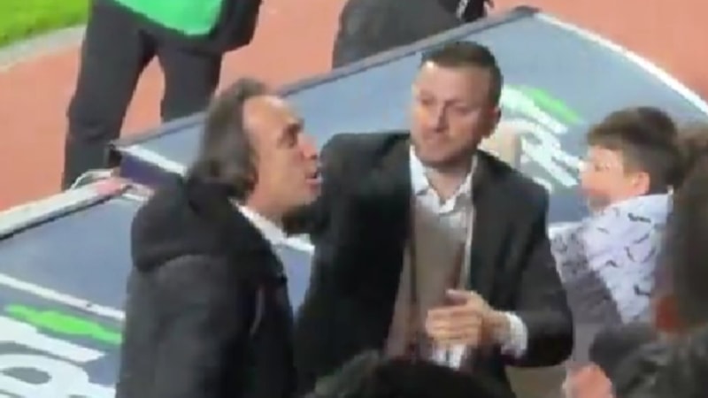 Taraftarların hem kendisine hem de rakip takıma yönelik eleştirilerine sinirlenen Murat Özkaya, saha kenarına inerek taraftarla tartışmaya başladı.