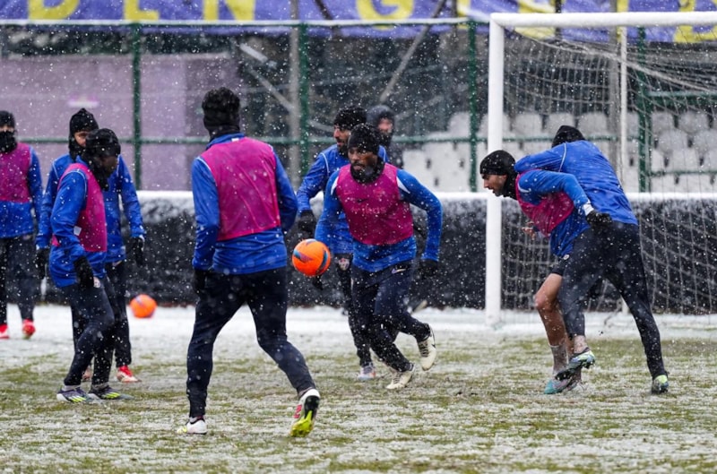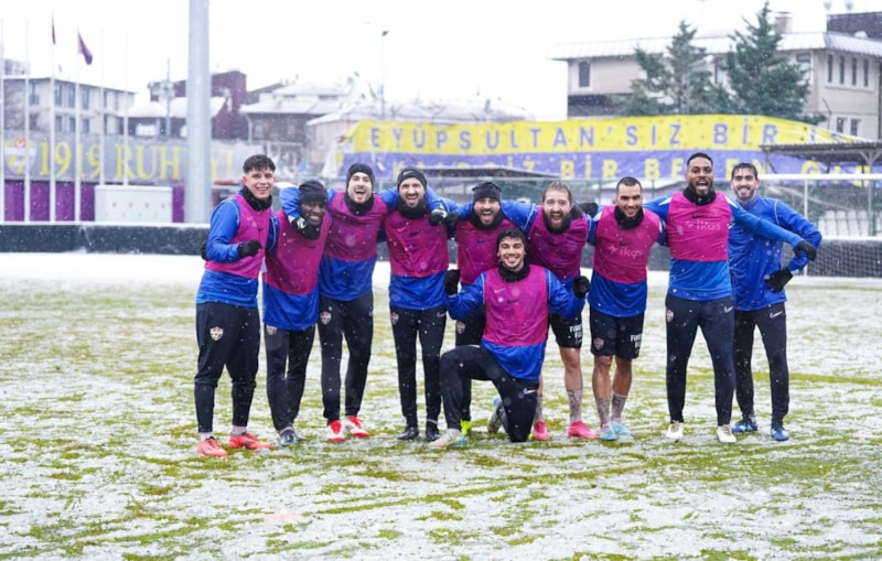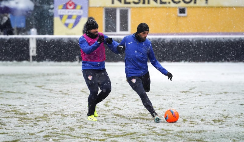 Teknik Direktör Arda Turan yönetiminde Eyüp Stadı’nda gerçekleştirilen antrenman, yoğun kar yağışı altında yapıldı.