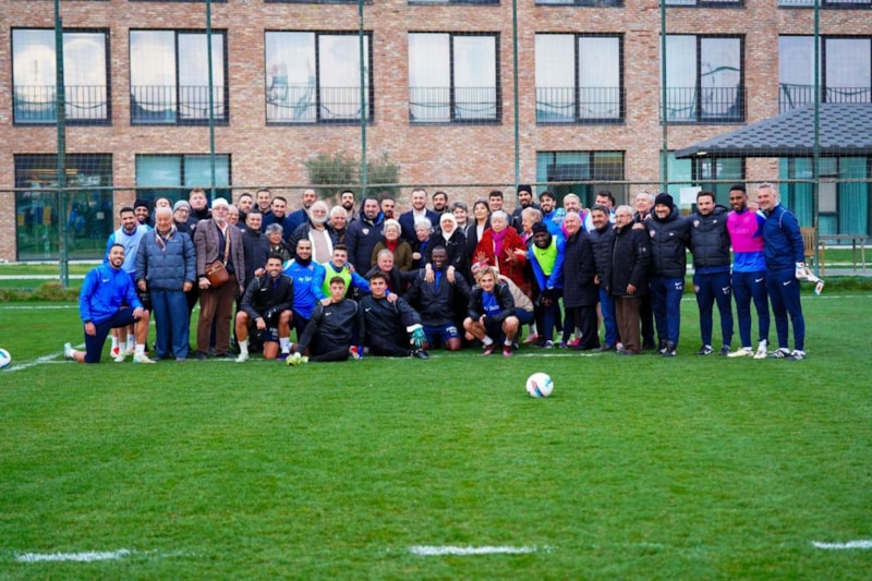 Ardından futbolcularla bir araya gelen huzurevi sakinleri, takım ile hatıra fotoğrafları çektirdi.