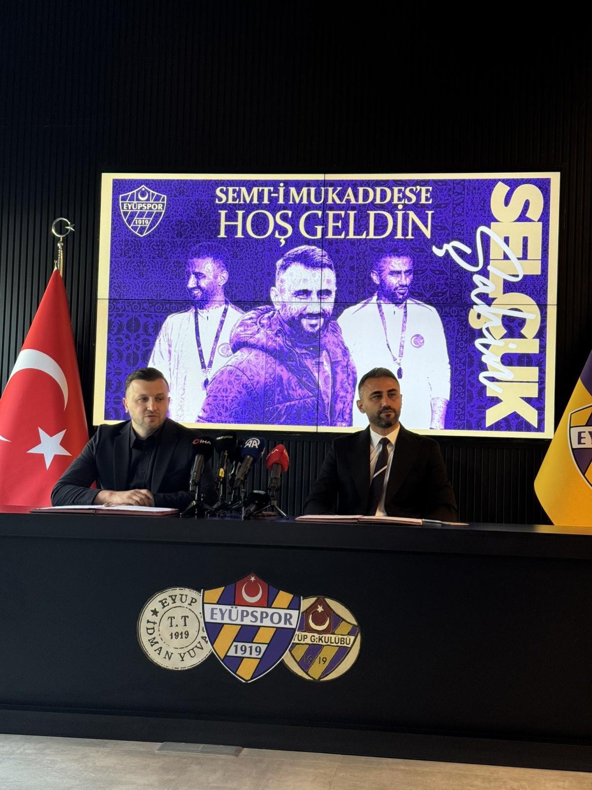 Eyüpspor Kemerburgaz Tesisleri'nde düzenlenen ve kulübün asbaşkanı Fatih Kulaksız'ın katıldığı törende Selçuk Şahin, kendisini 3 yıllığına eflatun-sarılı renklere bağlayan sözleşmeye imza attı.