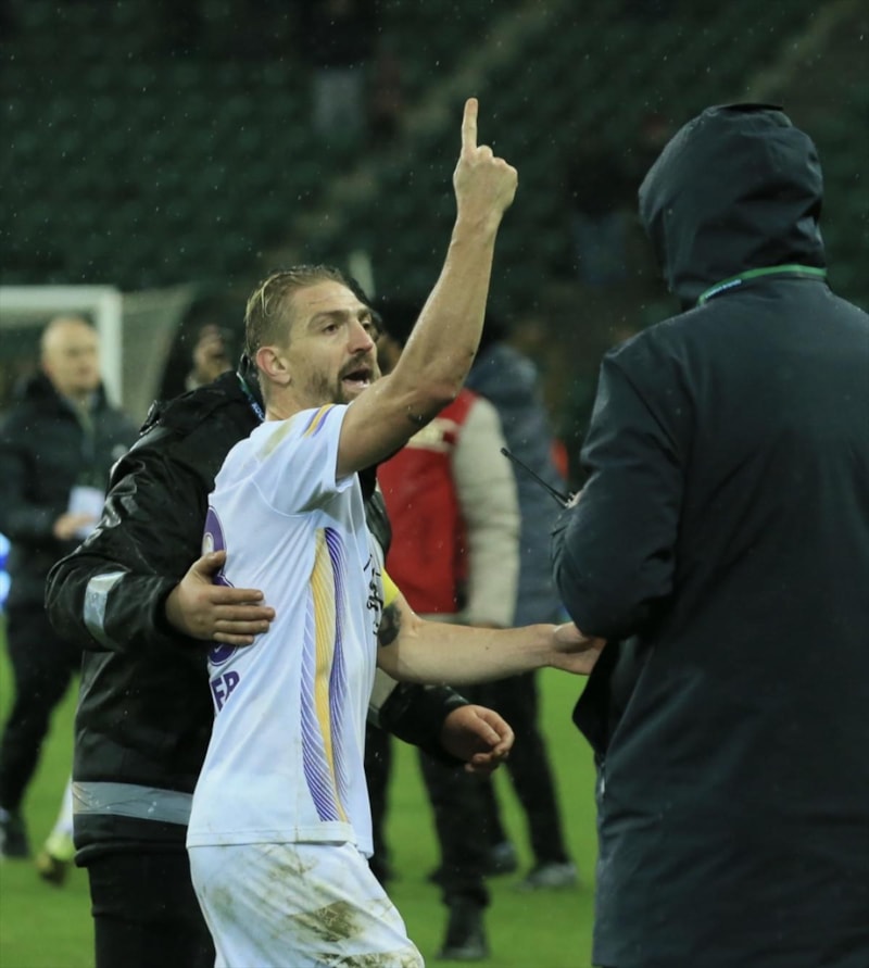 Bu hareketi sebebiyle hakemden sarı kart gören deneyimli oyuncuyla Kocaelispor taraftarları arasında gergin anlar yaşandı. Tribünlerden sahaya yabancı maddeler atıldı.