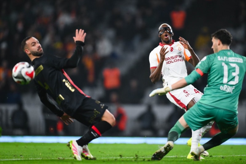 6' Galatasaray'ın sağ kanattan gelişen atağında Roland Sallai'nin derinlemesine pasıyla Victor Osimhen savunma arkasına hareketlendi ancak ceza alanı çaprazında topla buluşmak üzereyken kalesini terk eden Grbic tehlikeyi uzaklaştırdı.
