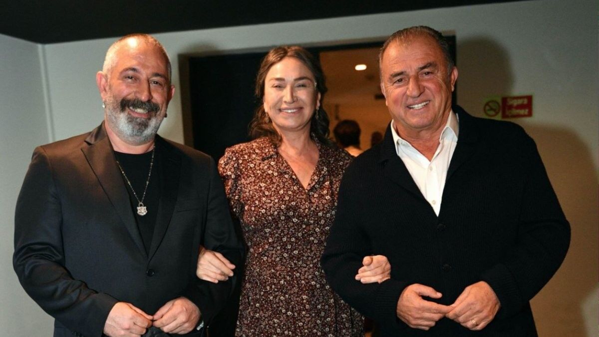 Fatih Terim, eşi Fulya Terim ile birlikte 'Aydınlık Evler' isimli tiyatronun galasına katıldı. Terim burada Cem Yılmaz ve Demet Akbağ ile poz verdi.