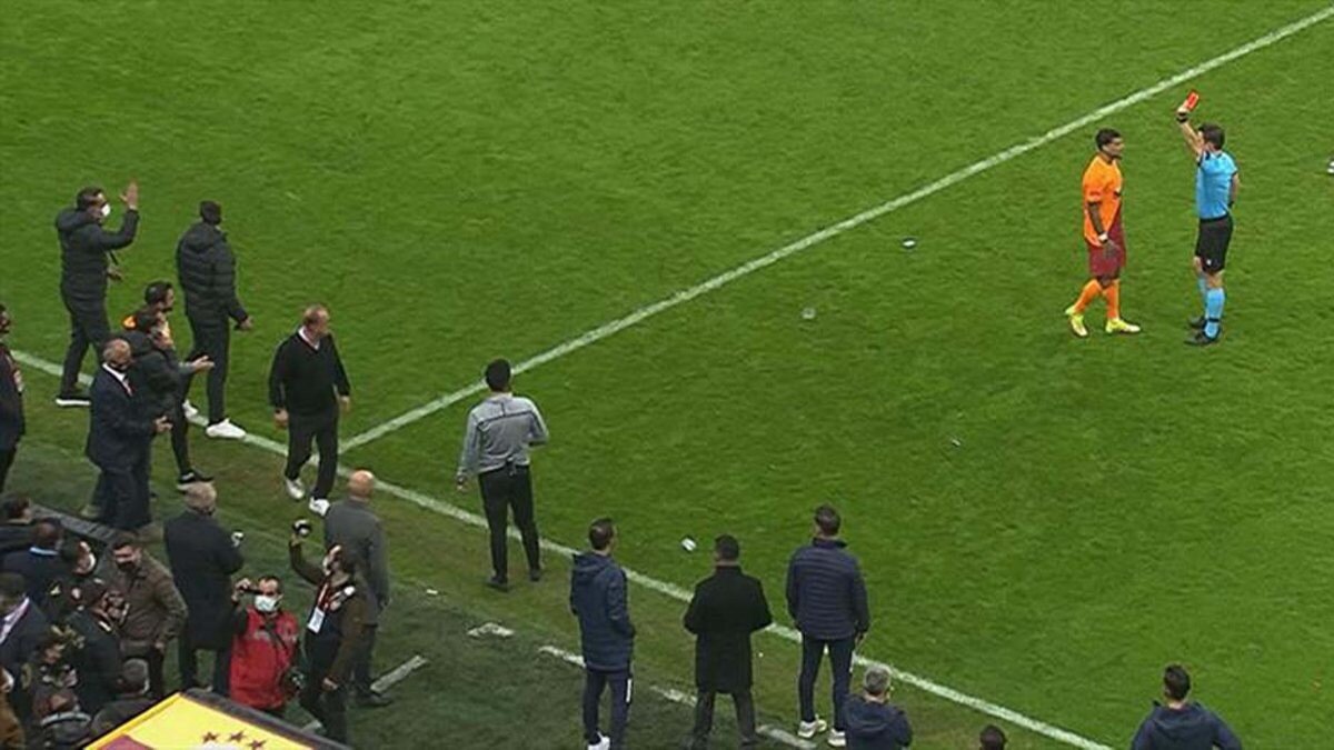 Sarı-kırmızılıların teknik direktörü Fatih Terim, her iki devrenin uzatma dakikalarında gördüğü sarı kartlar sonucu kırmızı kartla oyundan ihraç edildi.